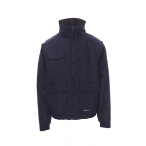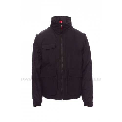 Giubbotto da uomo, maniche staccabili, zip 8 mm in plastica con cursore in metallo, cappuccio richiudibile nel colletto, elastico e stringi polsi, due ampie tasche frontali lock system, due tasche laterali, porta smartphone al petto. interno: imbottito, zip per agevolare stampe e ricami.
