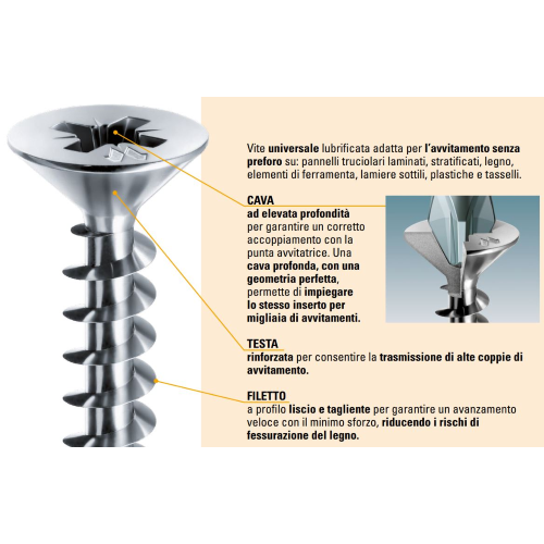 Vite universale lubrificata adatta per lavvitamento senza preforo su: